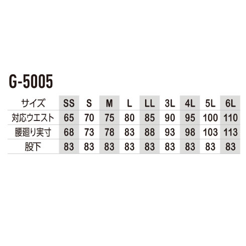 | 腰廻り実寸 | 68 | 73 | 78 | 83 | 88 | 93 | 98 | 103 | 113 |