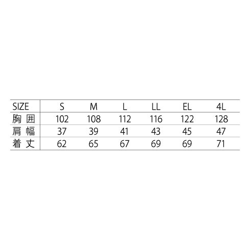 | サイズ | S | M | L | LL | EL | 4L |