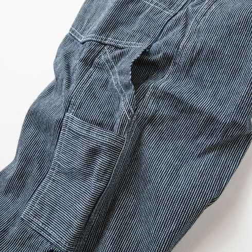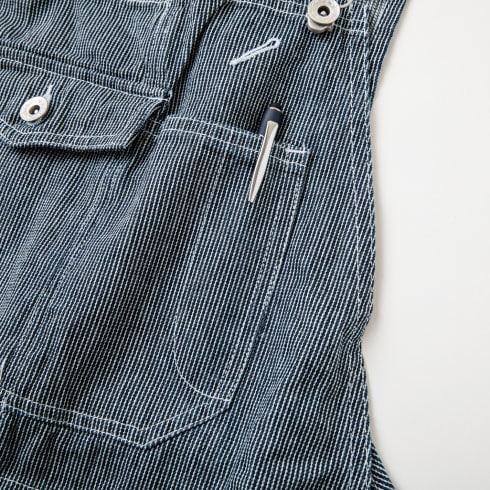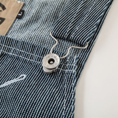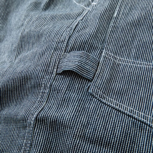 定番のヒッコリー柄を細目にアレンジし、ワンウォッシュ加工で風合いを出したオリジナルファブリック。
