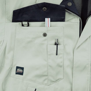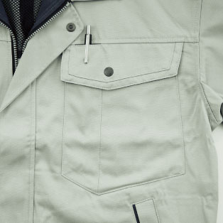 右胸マルチポケットペン差し・Dカン付き。