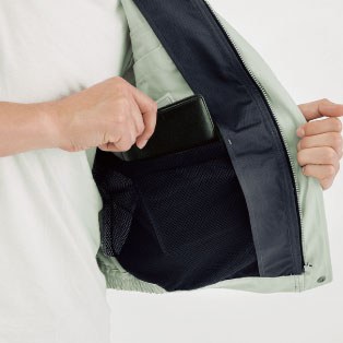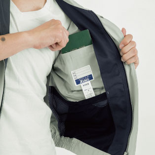 ●「胸ポケットフタの裏」「フロントファスナーの裏」「ウエストポケットの縁」に入った、さりげない配色がアクセント