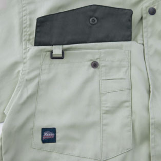 両胸のペン差し、右胸マルチポケット、内側に大型ポケットを装備した大容量収納ワークウェア。