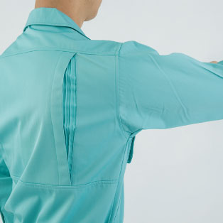 ●背中の肩部分は動きやすさを向上させるプリーツ仕様