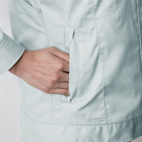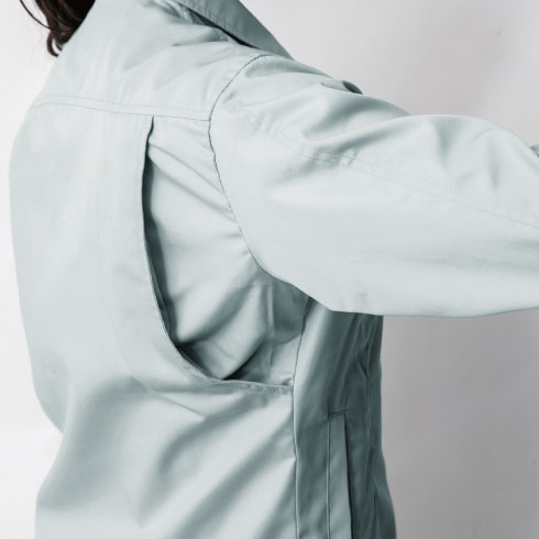 丈夫でしなやかなサマーツイルに抗菌防臭加工を施し、背中のノーフォークと袖の立体裁断バンザイカットにより肩、腕のスムーズな動きを実現した機能性作業服。レディスウェアは女性専用シルエットにこだわったフルラインアップシリーズ。