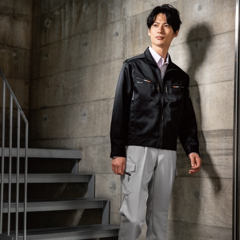 ●洗濯後にシワになりにくく、乾きやすい、イージーケア作業着