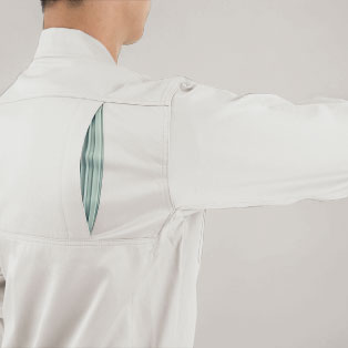 ・背中の肩部分は動きやすさを向上させるプリーツ仕様