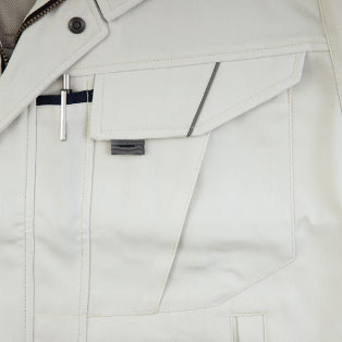 左胸ペン差し専用ポケット付き。