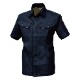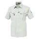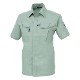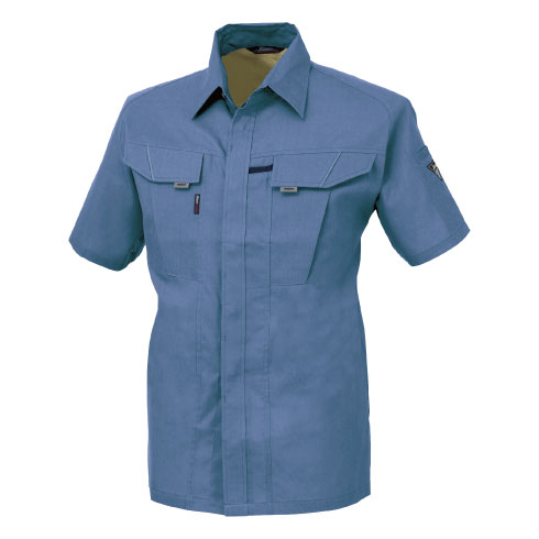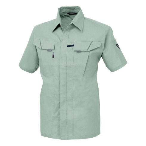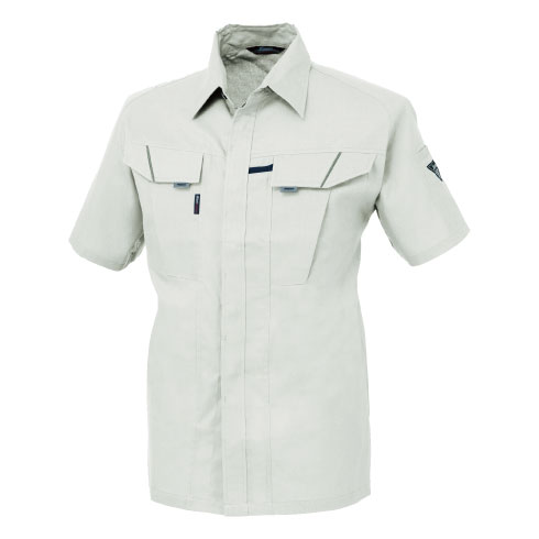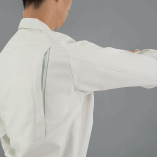 対象物にキズを付けないよう配慮した隠しボタンデザイン、風通しの良いサワークロスを使用したJIS規格の帯電防止作業服。。