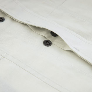 ボタンを隠す比翼仕立ての前立て。