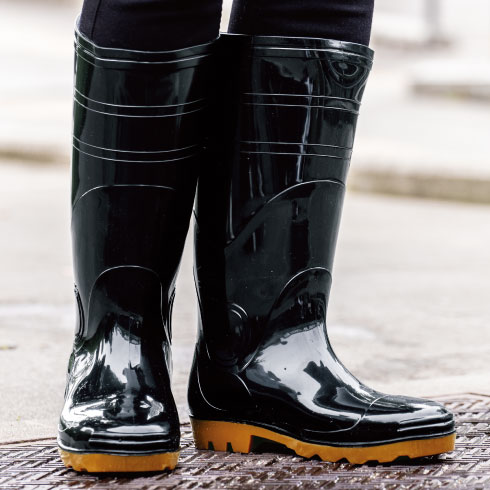 優れた防水性能と耐油機能を兼ね備えたPVCインジェクション製法のシンプルなセーフティー長靴。