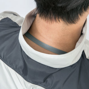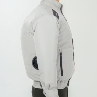 空気の漏れにくい高密度タフタを使用し、配色の肩当て、ヒジ当ての補強布が付いたヨーロピアンテイストの長袖の空調服®