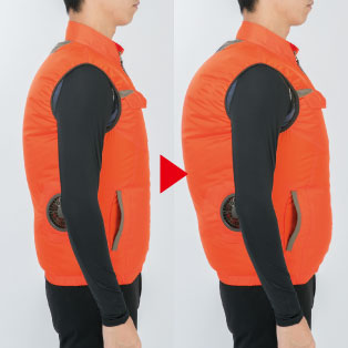 空気が漏れにくい高密度タフタを使用した、手元の風が作業に影響する方に最適な半袖の空調服®。