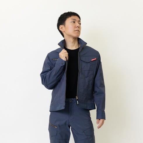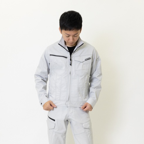 伸縮性、形態回復性に優れた20%のストレッチ制電素材を採用し、ストレスフリーな着用感とイージーケアを実現した企業ユニフォームの定番プロダクト。
