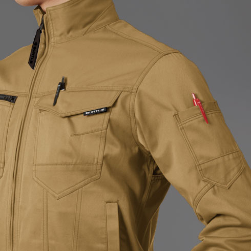 伸縮性、形態回復性に優れた20%のストレッチ制電素材を採用し、ストレスフリーな着用感とイージーケアを実現した企業ユニフォームの定番プロダクト。