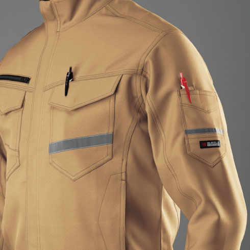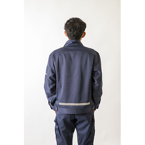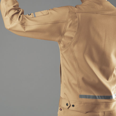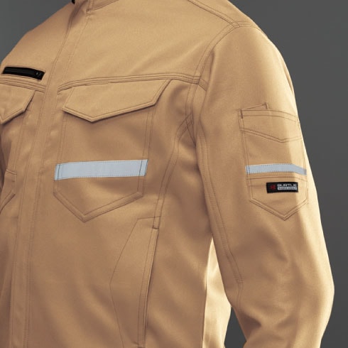 胸、バックに高視認リフレクターをシンボリックに施し、製品制電も兼備させ、あらゆるワークシーンでユーティリティ性を発揮。