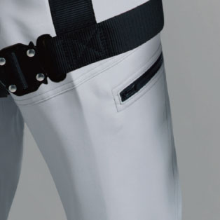 フルハーネスを装着してもポケットがベルトに隠れにくいデザイン仕様。