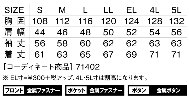| メーカー | 自重堂 | 商品番号 | jc71400 |