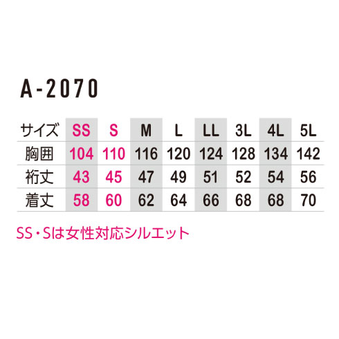 | サイズ | SS | S | M | L | LL | 3L | 4L | 5L | |
