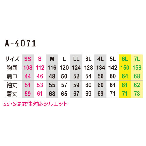 | サイズ | SS | S | M | L | LL | 3L | 4L | 5L | 6L | 7L |