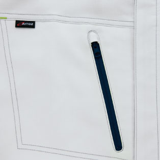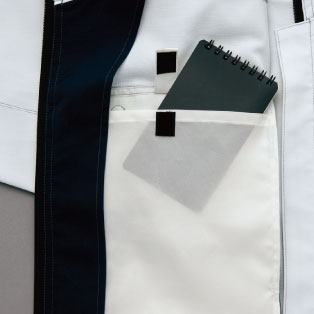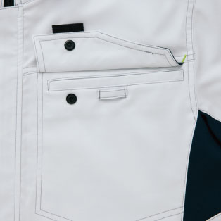 ポケットフラップは、正面からの視認性をアップさせる反射パイピング仕様。