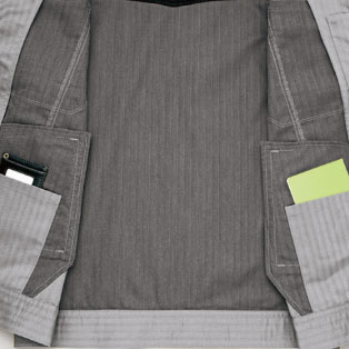 身頃内側の見返し部分にペン差しを装備。