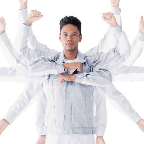 人の動きを研究・計測し、衣服の突っ張りや引きつりを劇的に軽減。あらゆる作業時の動作を快適にした究極のワーキングウェア。