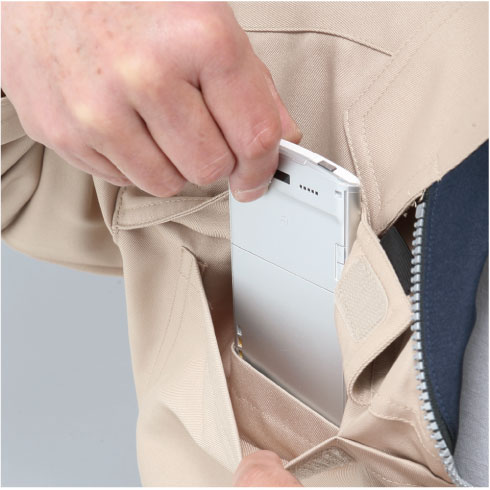 工場、自動車関係、ガス、電気等の危険な環境の仕事にも対応。突起物が表面に出ていないので、物を傷つけることのない仕様。