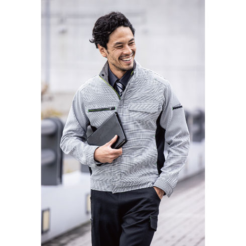 陰影のあるチドリチェックで高級感のあるディテールを演出。ストレッチ効果と立体裁断でストレスフリーの快適さ。