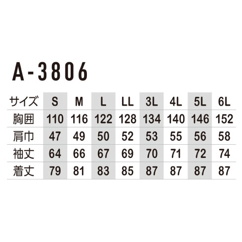 | 着丈 | 79 | 81 | 83 | 85 | 87 | 87 | 87 | 87 |