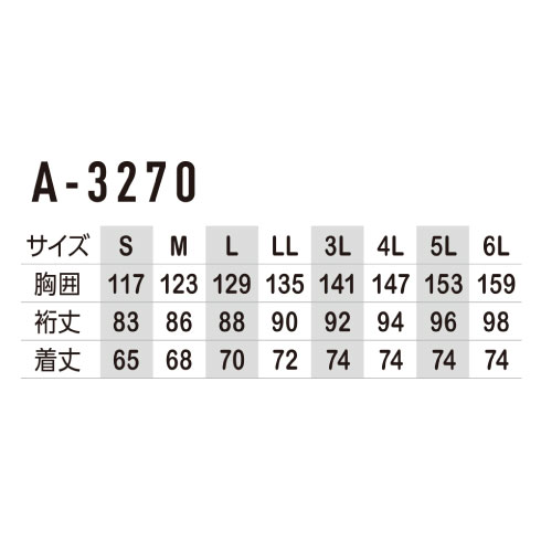 | 着丈 | 65 | 68 | 70 | 72 | 74 | 74 | 74 | 74 |