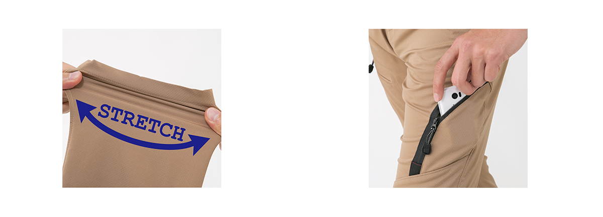 軽量・ストレッチ・吸汗速乾性を兼ね備えた高機能ハイブリッド素材。