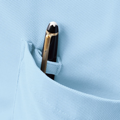 JIS帯電防止企画T8118適合のポロシャツ。衿後ろ部分に「クーリッシュウィンドウ」を搭載した防透・消臭機能付きポロシャツ。