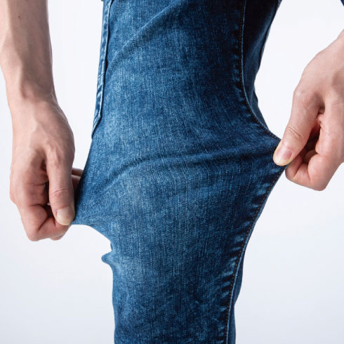 「足回りがバタつかないスキニーフィットタイプながら、高い伸縮性・伸縮回復性で不快なつっぱり感や締め付け感を防止。」