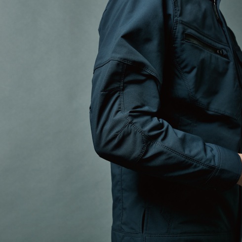 ●前ファスナーを最上部まで上げても、襟が首に当たらない独自デザイン→首元の窮屈感を軽減