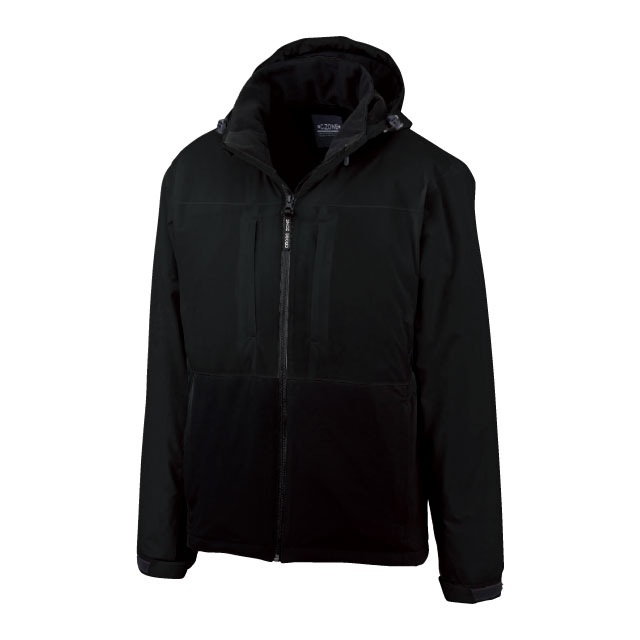 雨や水の侵入を防ぐ止水ファスナーや目貼りテープ、防風性に優れた防水ラミネートで、屋外での作業やアウトドアでも安心。さらに、前身裏側のアルミプリントが遠赤外線を反射し、衣服内を暖かく保ちます。フードは取り外し可能で、SS~5Lの幅広いサイズ展開によりユニセックスで使用可能です。