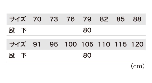 | サイズ | 70 | 73 | 76 | 79 | 82 | 85 | 88 |