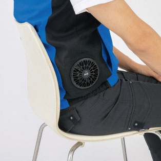 ファン取付部を脇につけることで、座っての作業もファンが身体に当たりにくい